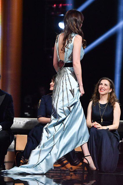 Джонсон віддала перевагу для червоної доріжки сукні з глибоким вирізом в зоні декольте і відритою спиною від Gucci. Знімками зірки шанувальники актриси діляться в соціальних мережах.