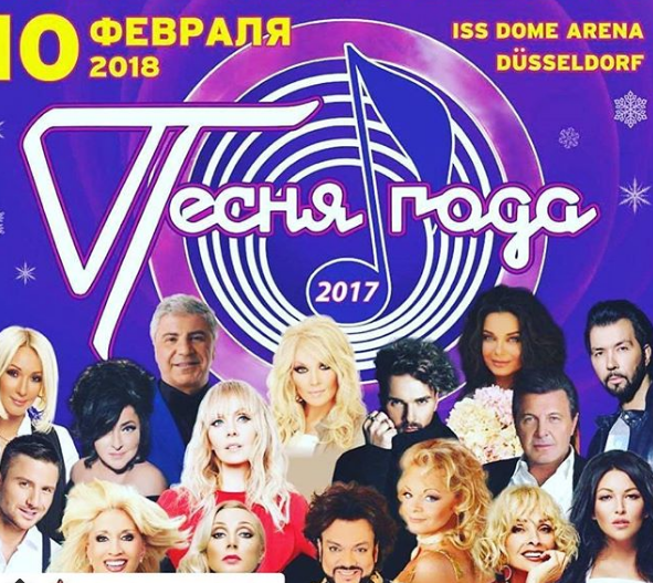 “Уже зовсім скоро. Дюссельдорф, 10 лютого, легендарний музичний фестиваль “Пісня року” в Німеччині”, – сказано в підписі до афіші.