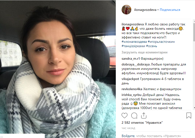 Про це вона повідомила на своїй сторінці в Instagram. “Я люблю свою роботу так, що навіть хворіти ніколи, але все ж таки підкажіть, що швидко і ефективно ставить на ноги?!”, — написала Гвоздьова.