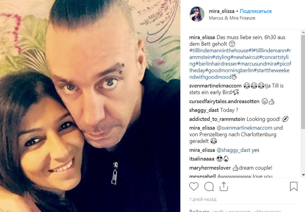 На них дівчина позувала в обнімку з Тіллем. Можна було подумати, що співак сфотографувався із нею як зі звичайною фанаткою, якби не коментар, який стиліст додала під знімком.
