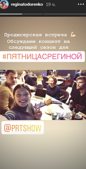 “Продюсерська зустріч. Обговорюємо концепт на наступний сезон для шоу “П’ятниця з Регіною”, — написала Тодоренко, додавши, що найближчим часом також планує провести вебінар на тему материнства.