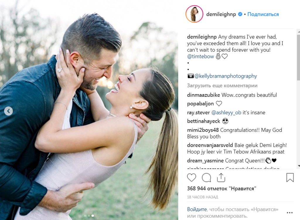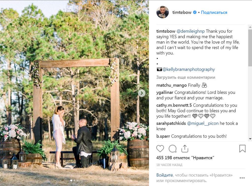 Про заручини закохані повідомили на своїх сторінках в Instagram, опублікувавши знімки. “Спасибі, що сказала “так” і зробила мене найщасливішою людиною у світі. Ти кохання всього мого життя”, — написав Тім.