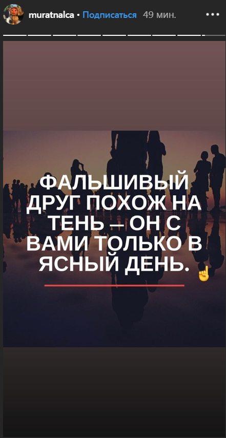 Схоже, що Мурат усе ще має почуття до своєї екс-дружини і переживає через розлучення. У соціальних мережах він часто публікує пости, в яких залишає загадкові послання.