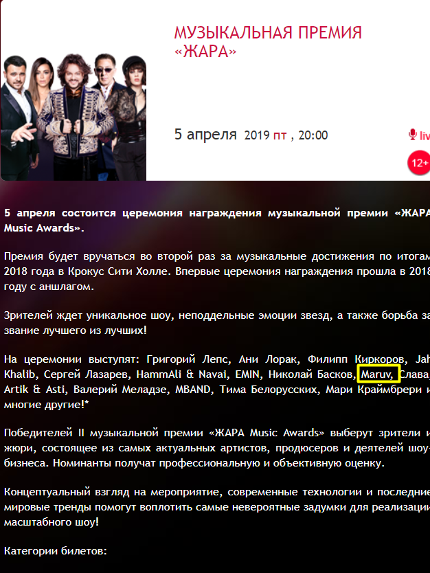 Крім того, виступ МARUV очікується на церемонії нагородження музичної премії “Жара Music Awards” 5 квітня. За словами організаторів, співачка як і раніше збирається вийти на сцену в цей вечір.
